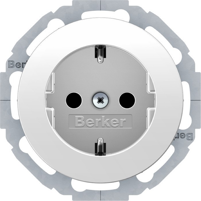 Розетка Berker R.CLASSIC, скрытый монтаж, с заземлением, белый блестящий, 47452089