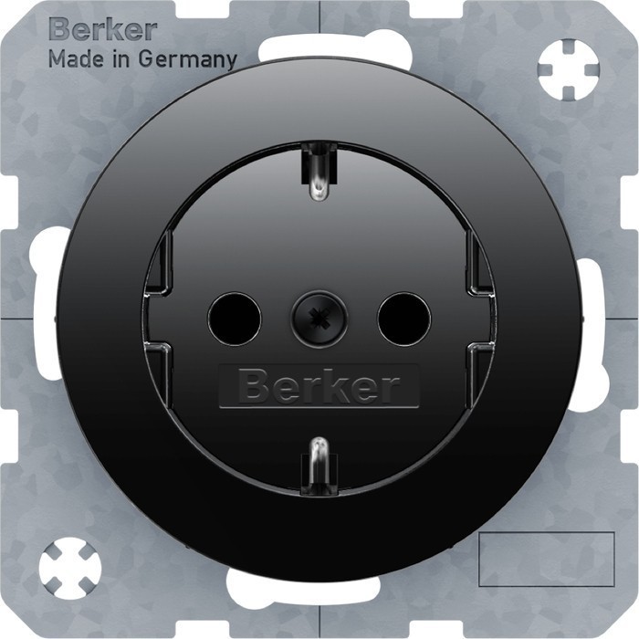 Розетка Berker, скрытый монтаж, с заземлением, со шторками, черный блестящий, 41232045